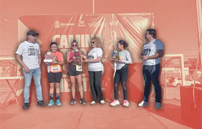 Al llegar a la meta, personal del municipio recibió a los competidores con medallas, bebidas hidratantes y fruta fresca, como reconocimiento por su participación y esfuerzo.