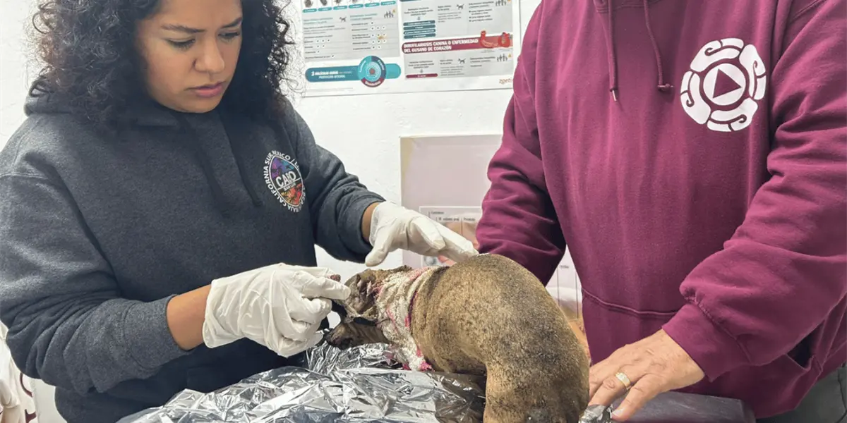Pucca, una perrita de raza pequeña y 16 años de edad, también sufrió quemaduras de consideración. Debido a la gravedad de sus lesiones, fue trasladada de urgencia a la Clínica de la Dirección de Protección y Bienestar Animal.