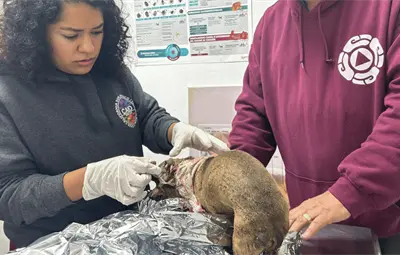Especialistas veterinarios brindaron atención inmediata a la canina. Su estado de salud fue reportado como delicado pero estable.