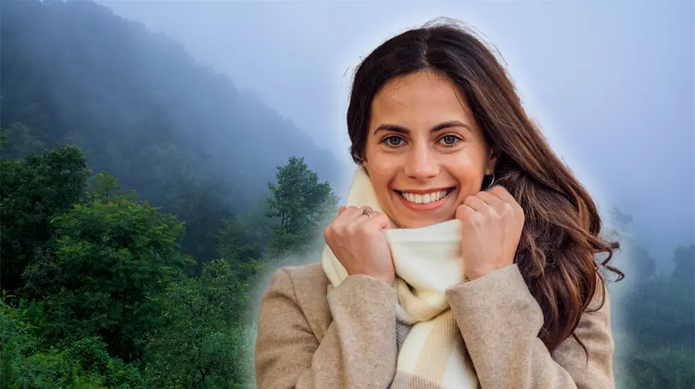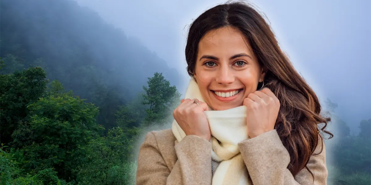 Una mujer con bufanda y ropa abrigadora. Foto: Canva