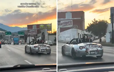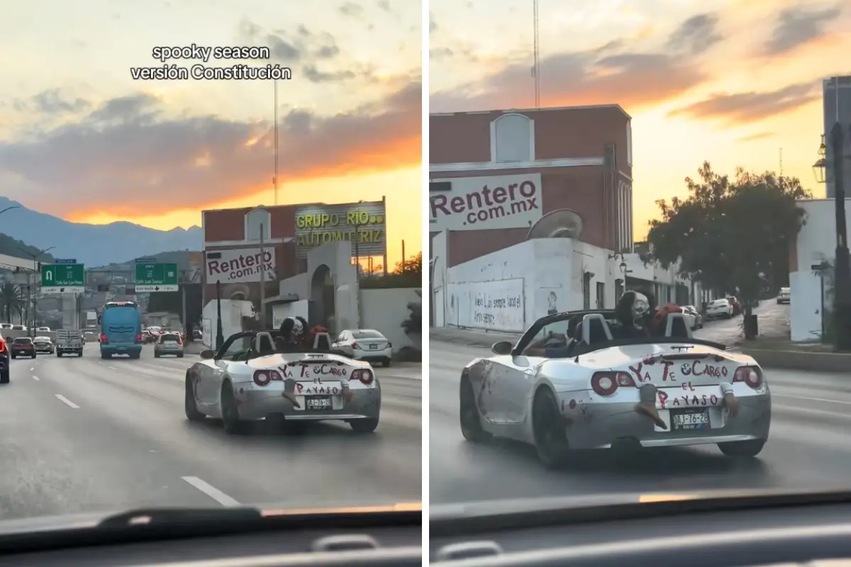 Halloween en Monterrey: conductor convierte su auto en escena de terror en Constitución