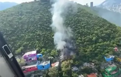 Helicóptero de Protección Civil Nuevo León combate incendio en el cerro de la Loma Larga