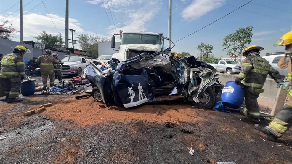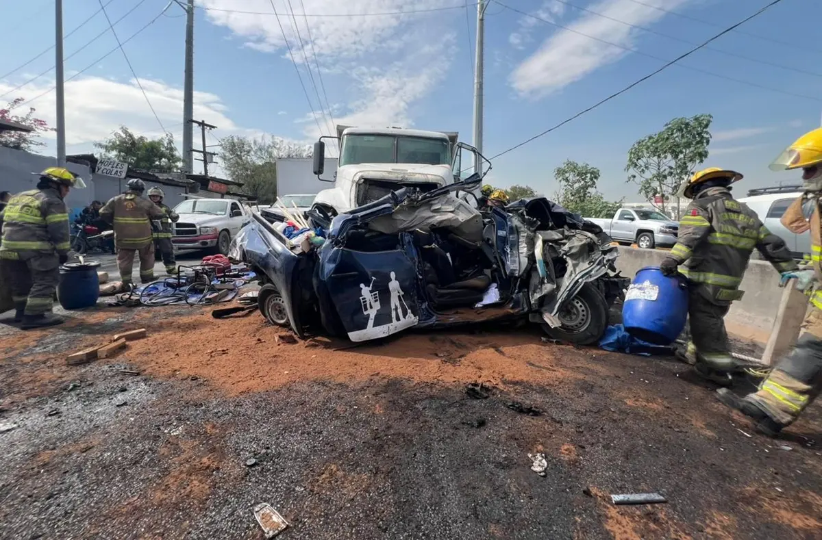 Protección Civil de Nuevo León informó que el accidente ocurrió en el cruce de Morones Prieto Oriente y Gustavo M. García, en el fraccionamiento Buenos Aires. En el lugar, una camioneta pick up quedó comprimida entre dos camiones de carga pesada, ocasionando que el conductor quedara atrapado entre los restos del vehículo.