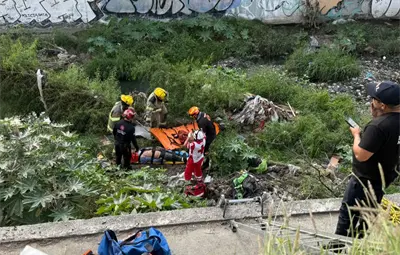 Vecinos alertaron a la línea de emergencias de Protección Civil sobre la caída de una persona desde el puente peatonal hacia un arroyo, lo que permitió una respuesta rápida de los cuerpos de rescate.