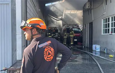 Protección Civil sofoca incendio en bodega de San Nicolás; el fuego consumió cuatro ambulancias y un vehículo particular.