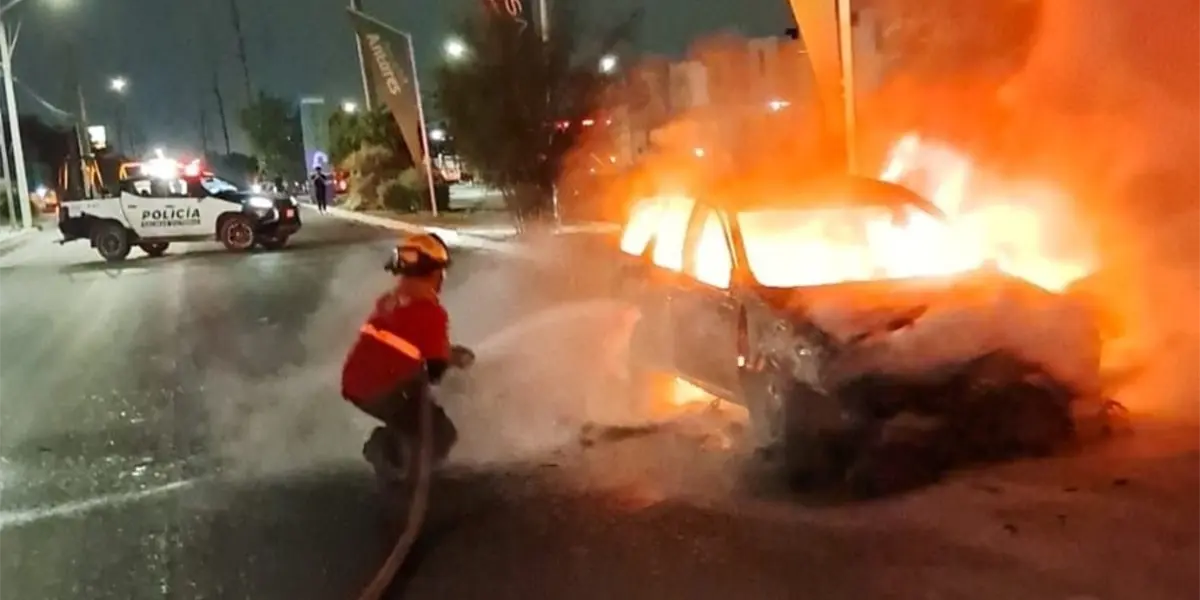 La madrugada de este martes, un fuerte incendio sorprendió a vecinos de la colonia Los Pilares Sector Andalucía, en el municipio de Salinas Victoria, cuando un auto fue consumido por las llamas sobre una de las avenidas más transitadas del sector.