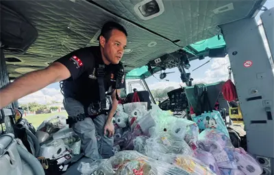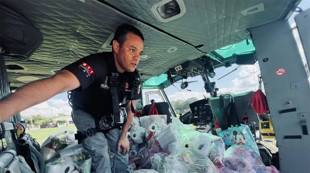 Actualmente, el helicóptero de Protección Civil de Nuevo León realiza el traslado de despensas recolectadas por el estado de Veracruz, con el objetivo de garantizar que la ayuda llegue de manera rápida y segura a las familias que se encuentran incomunicadas.