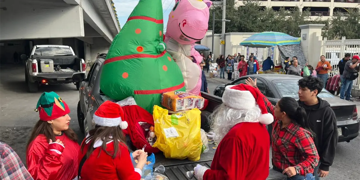 Un operativo Navideño de la Fiscalía de Nuevo León lleva comida y juguetes a las familias afuera del Hospital Universitario.