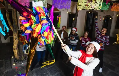 Entre las actividades imprescindibles está la tradicional petición de posada, donde los asistentes recrean la búsqueda de refugio de María y José a través de cantos y villancicos.