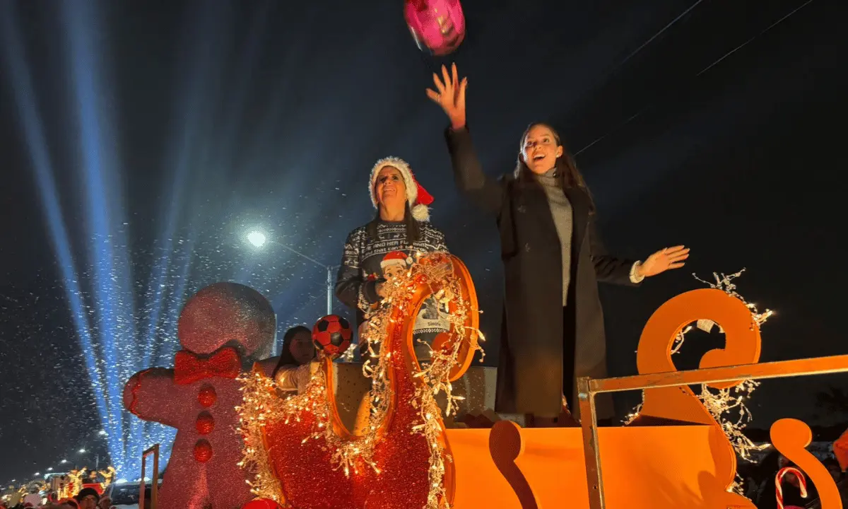 Mariana Rodríguez y Martha Herrera celebran el segundo desfile navideño en Monterrey, con juguetes para los asistentes.