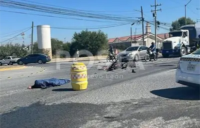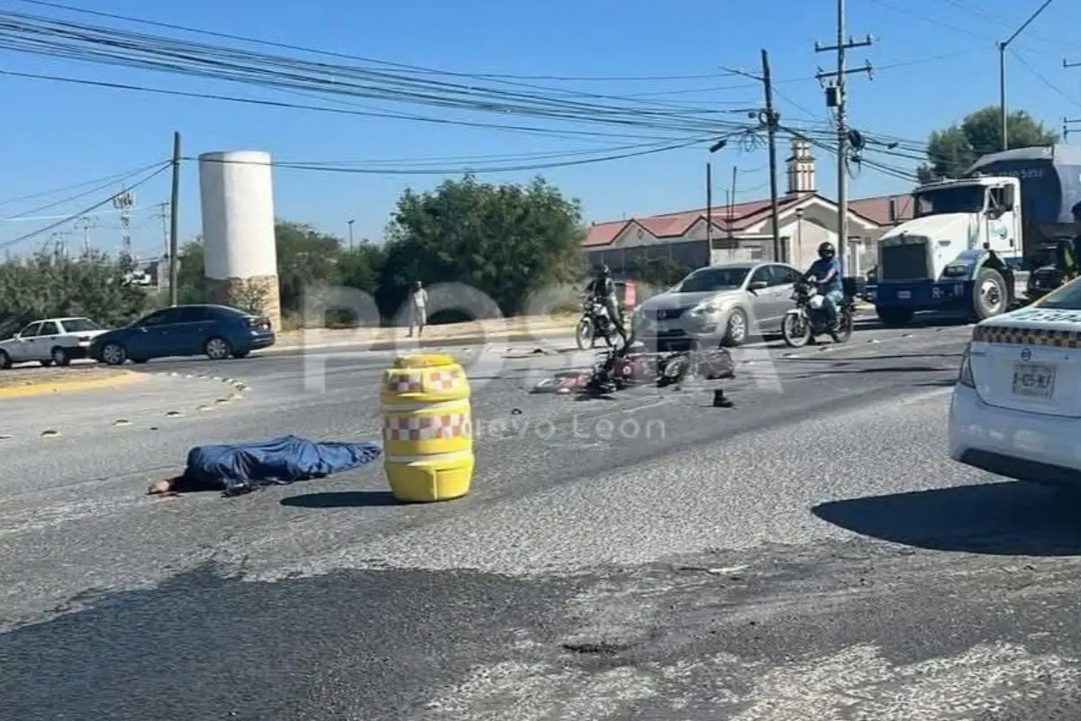 El percance vial ocurrió sobre la Carretera Zuazua en su cruce con avenida Real San Pedro, en la colonia Real San Pedro, cuando por razones aún no determinadas, la motocicleta impactó contra la pesada unidad.