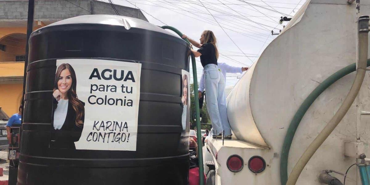 Tras horas sin el suministro, una pipa de Agua y Drenaje acudió a rellenar un mega tinaco, luego de las gestiones de la diputada Perla Villarreal.