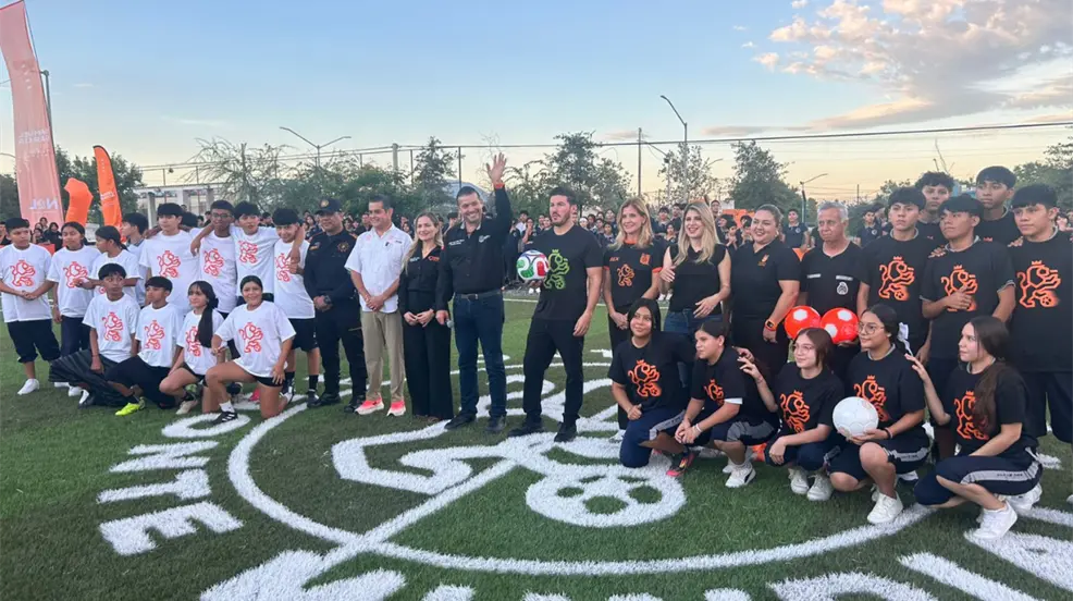 Esa es la cancha número 322 que inaugura Samuel García Sepúlveda, las cuales forman parte del programa “Ponte Nuevo, Ponte Mundial”, que incluye un torneo entre estudiantes de primaria y secundaria.