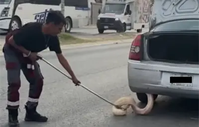 El reporte generó movilización de las autoridades locales, quienes acudieron de manera urgente ante la inusual emergencia. Aunque la presencia de este tipo de reptiles no es común en áreas urbanas, el caso llamó la atención por la forma en que la pitón logró ocultarse en el vehículo sin que la conductora lo notara.