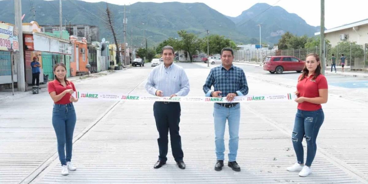 El alcalde de Juárez, Paco Treviño inauguró la repavimentación resistente a lluvias en la calle Santa Luisa de Marillac de la Colonia Santa Mónica.