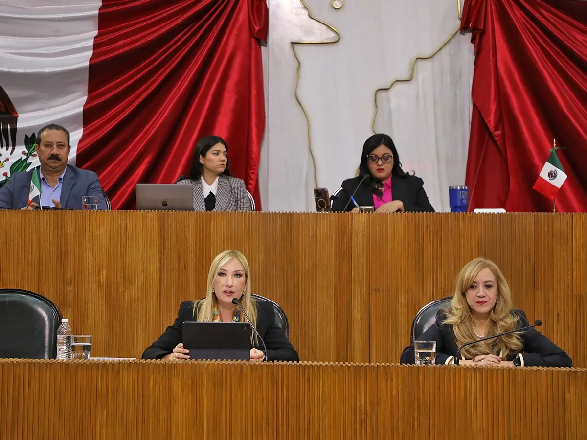 La secretaria de Salud de Nuevo León, Alma Rosa Marroquín, y Graciela Guadalupe Buchanan Ortega, secretaria de las Mujeres, durante la Cuarta Glosa en el Congreso del Estado. Foto: Congreso de Nuevo León
