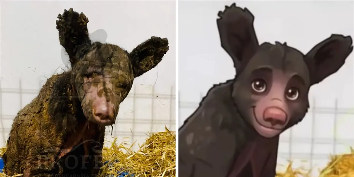 La osa Mina y una caricatura. Foto: Facebook Fundación Invictus
