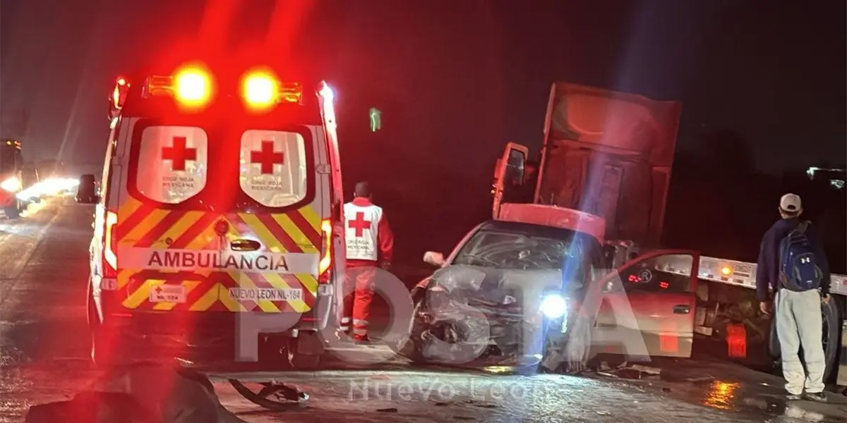 El golpe dejó su automóvil con severos daños en la parte frontal, incrementando la magnitud del choque múltiple en este tramo de la carretera a Monclova, dentro del municipio de Escobedo.