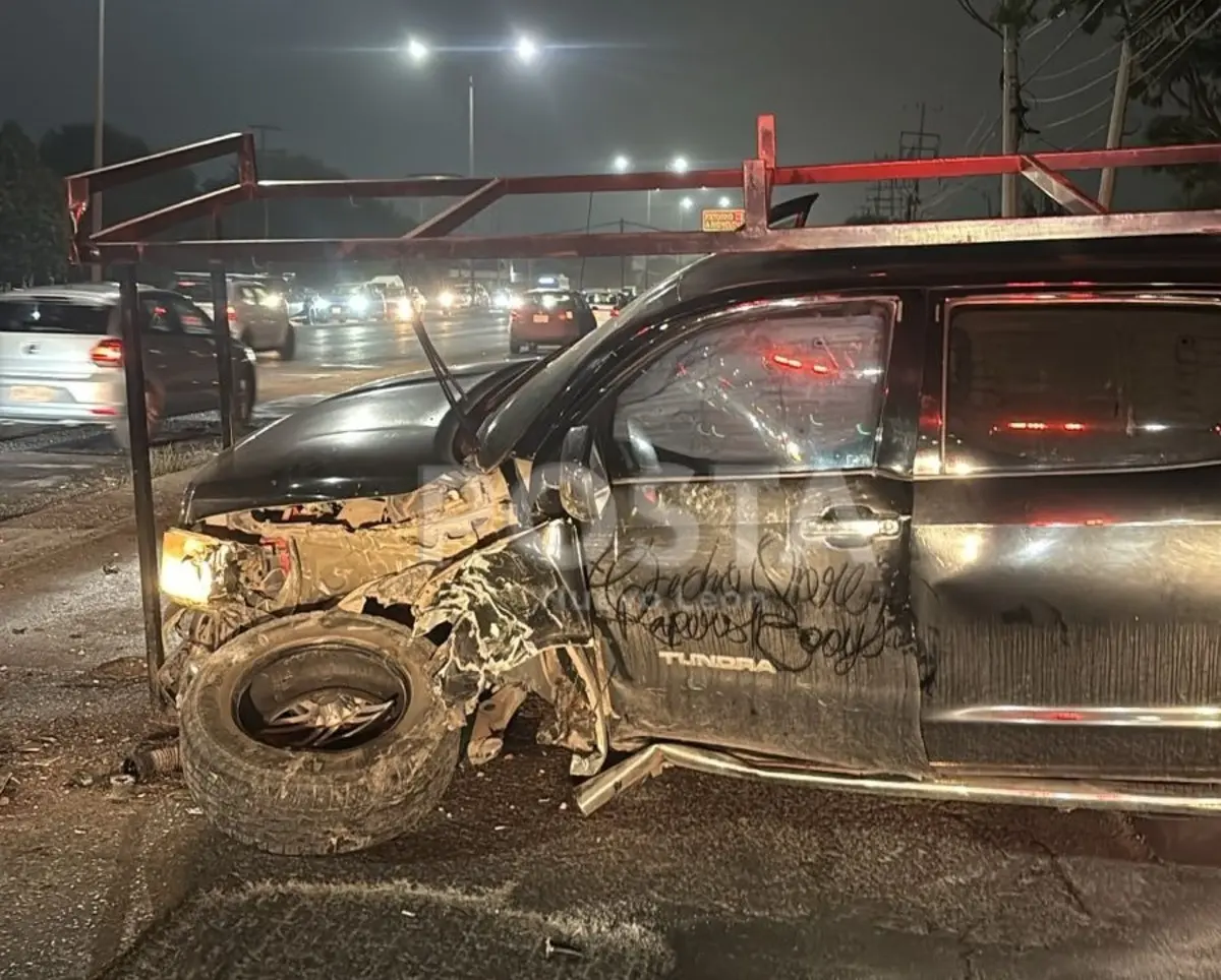 De acuerdo con los primeros reportes, el estrellamiento se registró a unos metros del entronque con la carretera a Monclova, en dirección hacia el norte, cuando una camioneta perdió el control y terminó chocando contra un muro de concreto y acero que sostenía un señalamiento tipo bandera.