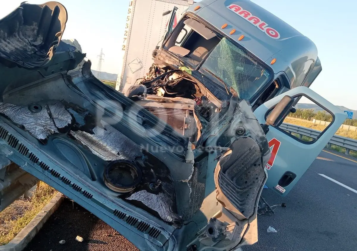 Un trágico choque entre un tráiler y un camión dejó como saldo una persona fallecida y un lesionado la mañana de este viernes en la autopista a Laredo, a la altura de la zona de Mamulique, en Salinas Victoria, Nuevo León.