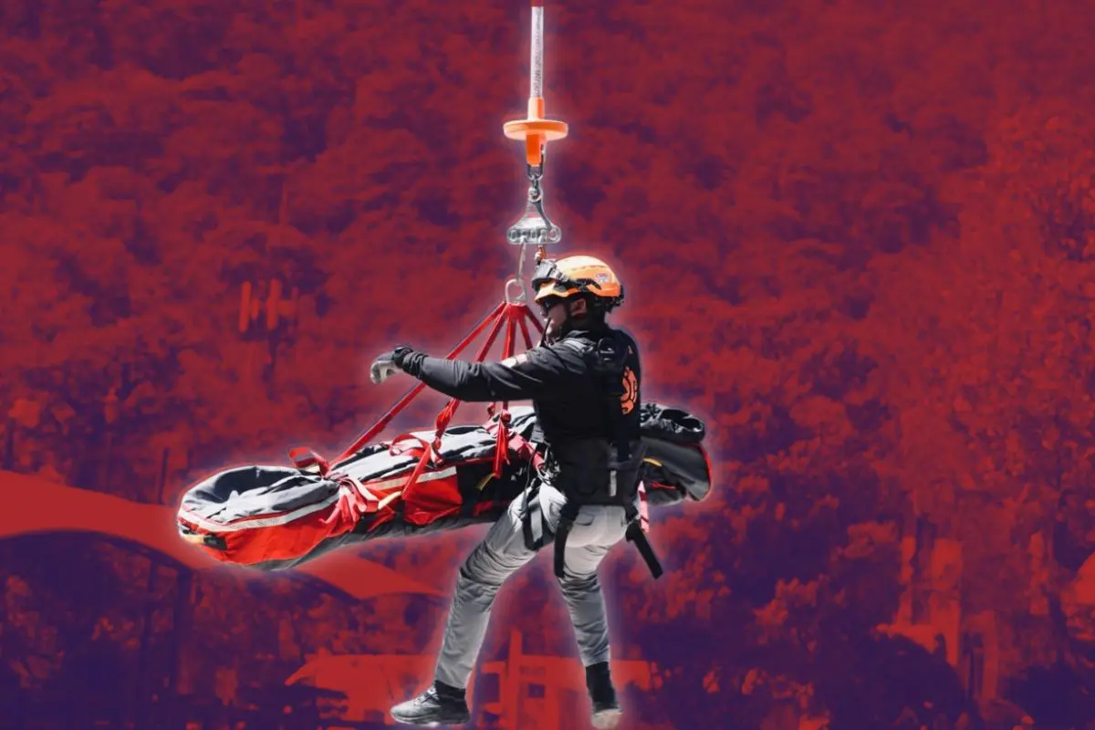 Debido a las condiciones del terreno, Protección Civil de Nuevo León desplegó un helicóptero para realizar la evacuación aérea del ciclista y garantizar su traslado seguro al hospital Christus Muguerza para su atención debido a una probable fractura de cadera.