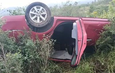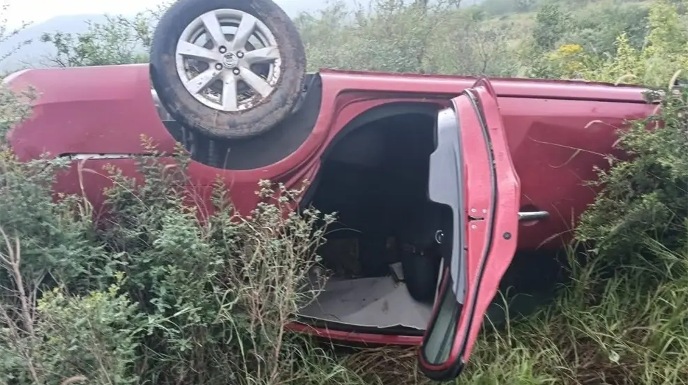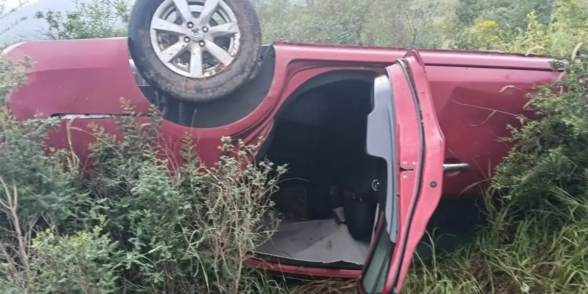 Un vehículo sufrió una volcadura sobre el kilómetro 53 de la carretera a Colombia en Salinas Victoria.