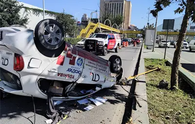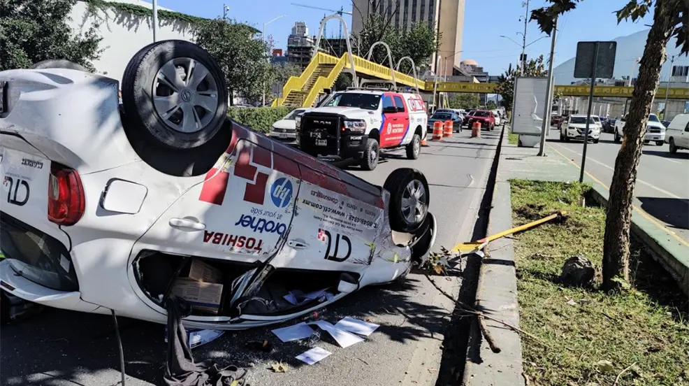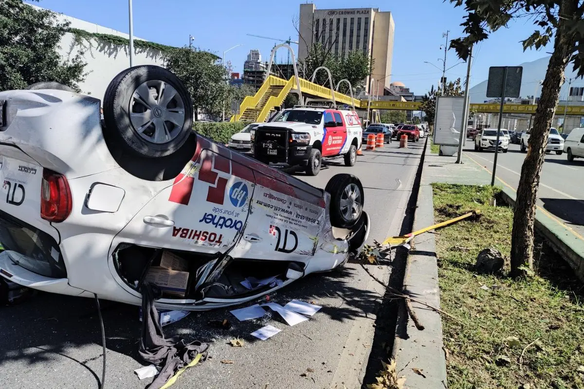 La tarde de este viernes, se registró un accidente tipo volcadura sobre la avenida Constitución, en su cruce con la avenida Benito Juárez, justo frente al complejo Pabellón M. El incidente provocó una rápida movilización de los cuerpos de emergencia en una de las arterias más transitadas de la capital regiomontana.