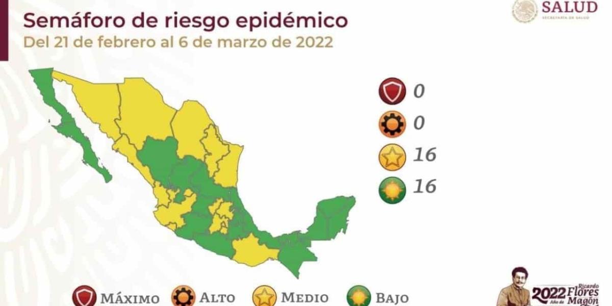 El nuevo semáforo epidemiológico de México operará hasta el 6 d marzo y tiene 16 entidades en color verde