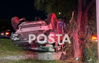 Un conductor terminó por volcar tras perder el control de su vehículo en el municipio de Monterrey.