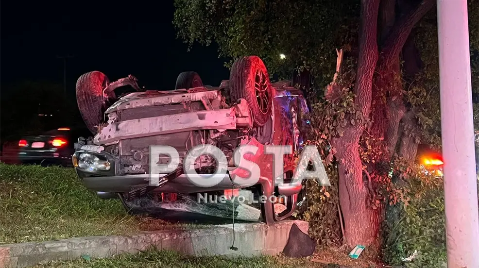 Presuntamente el automovilista circulaba sobre la lateral de la avenida Garza Sada y al perder el control de su auto se impactó contra el muro de concreto, subió a la jardinera y luego se impactó contra una luminaria, para terminar volcado a lado de un árbol.