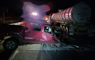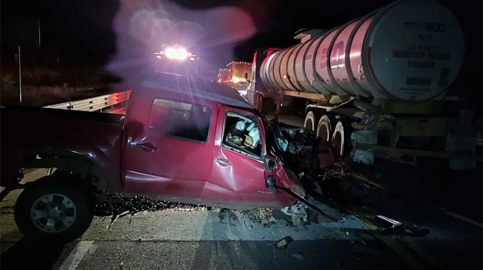 Dos personas perdieron la vida luego de impactar su camioneta contra un tracto camión en Cadereyta.