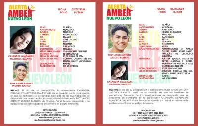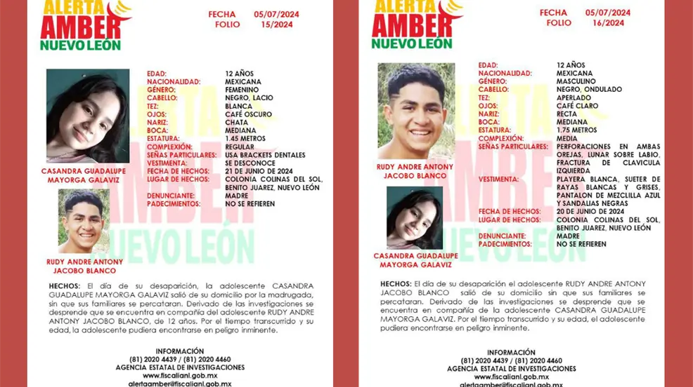 Activan Alerta Amber para localizar a Casandra Guadalupe y Rudy André; Juárez NL