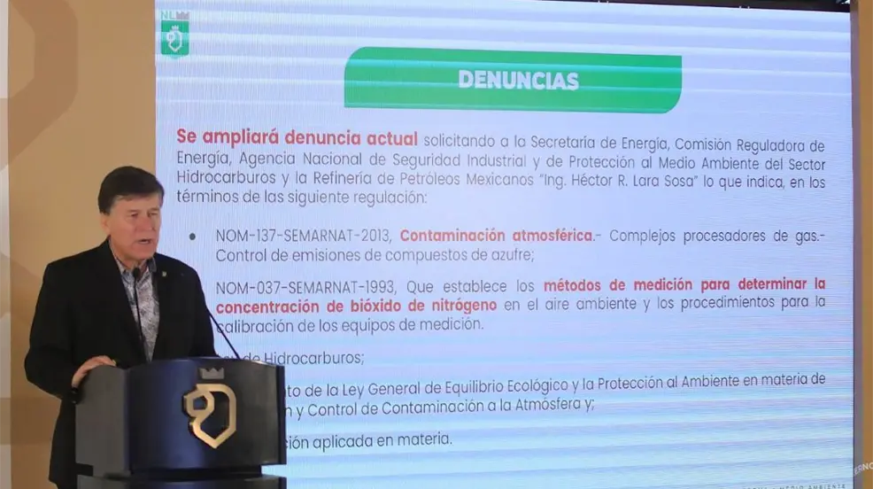 Gobierno de Nuevo León amplía denuncia contra la Refinería de Pemex en Cadereyta por falta de mantenimiento a plantas desulfuradoras y desaladoras.