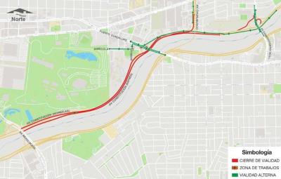 Los cierres se realizarán en horario nocturno, iniciando a las 23:00 horas y reabriendo la circulación a las 5:00 horas los días lunes 3, martes 4 y miércoles 5 de abril.