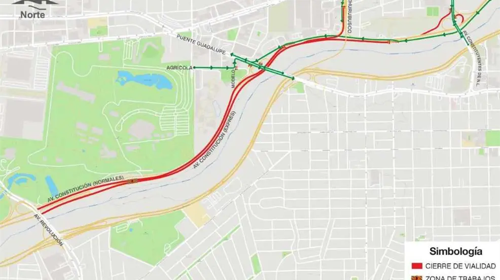 Quienes circulan por el Puente Guadalupe y regularmente se incorporan a Constitución, deberán seguir por Colón hacia la Y griega.