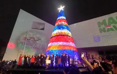 Con encendido del pino inician actividades navideñas en la Explanada de los Héroes para todo público.