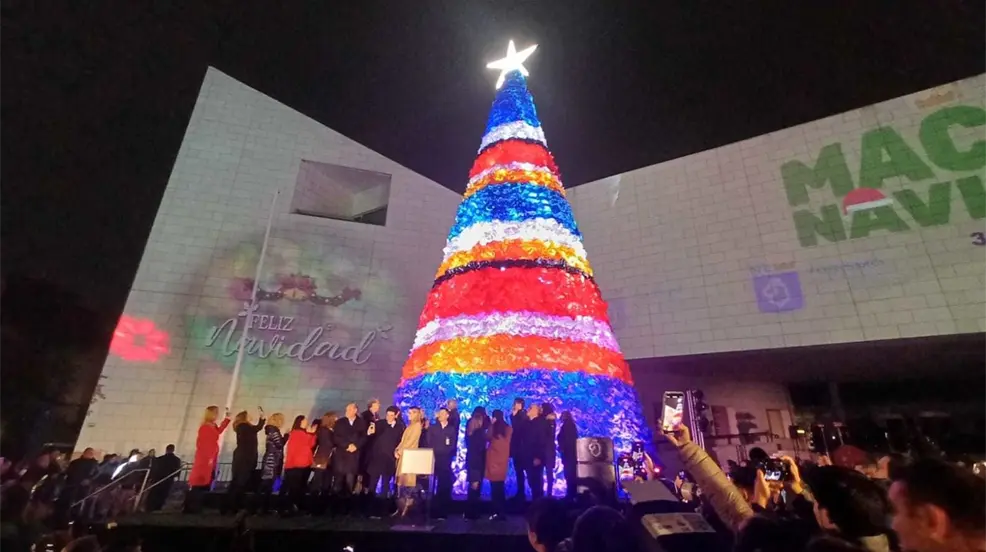 MONTERREY, Nuevo León.- Se llevó a cabo el encendido del tradicional pino navideño en la Explanada del Paseo Santa Lucía.
