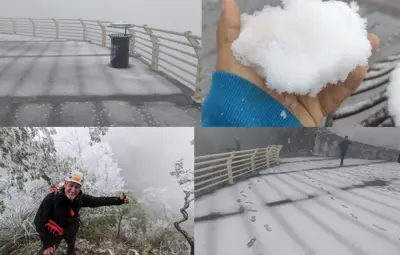 Ante baja de temperaturas, sierras de Bustamante y Santiago se visten de blanco con caída de agua nieve.