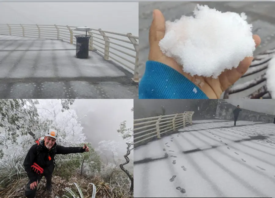En la ruta Pico Cuauhtémoc, en Cerro de Las Mitras, en municipio de Monterrey se tiñó de blanco.