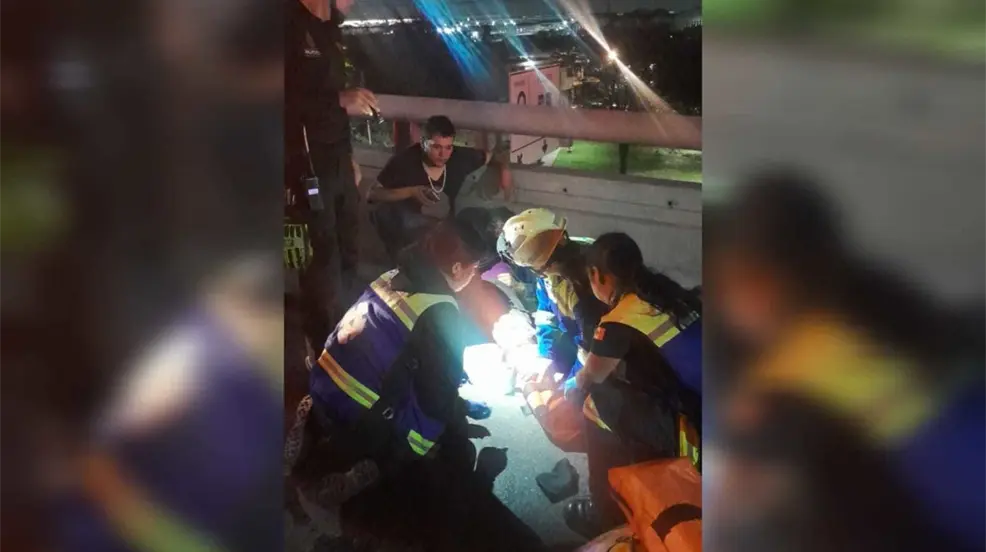 En el lugar, una camioneta se estrelló contra el muro de contención en la parte alta del puente.
