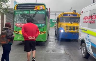 GUADALUPE, Nuevo León.- En Guadalupe, se registró un choque entre dos rutas urbanas.