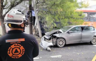 MONTERREY, Nuevo León.- Elementos de Protección Civil de Nuevo León, en coordinación con Protección Civil de Monterrey, atendieron un accidente vial ocurrido en la intersección de Ruperto Martínez y Álvaro Obregón, en la Colonia Centro de Monterrey.