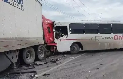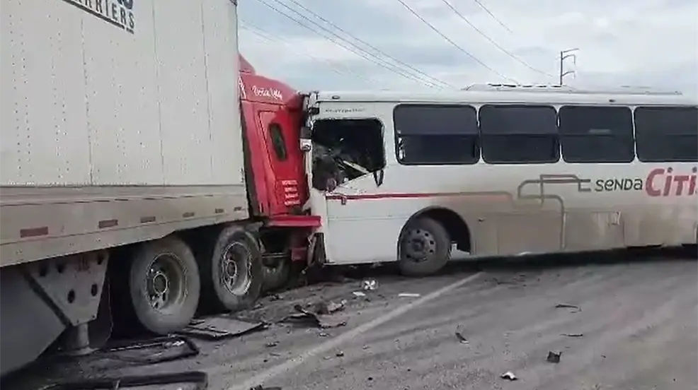 CIÉNEGA DE FLORES, Nuevo León.- Al menos dos heridos fue el saldo que dejó un choque entre un tráiler y un transporte de personal, en la Carretera a Laredo, municipio de Ciénega de Flores.