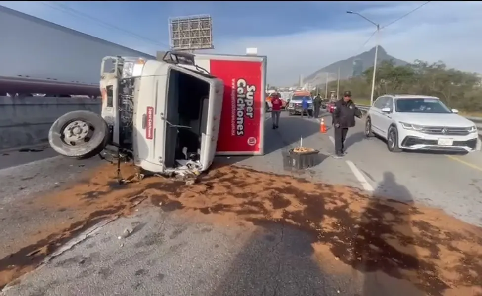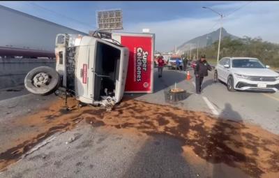 Choque y volcadura en Monterrey provoca tráfico en Avenida Morones Prieto