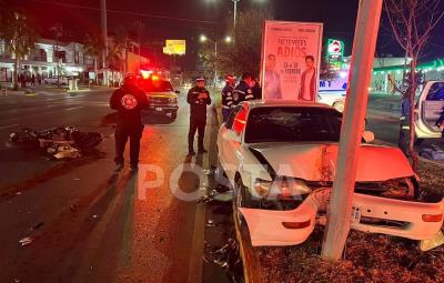 Según autoridades la imprudencia del automovilista que salía del estacionamiento de una plaza comercial origino el evento vial.