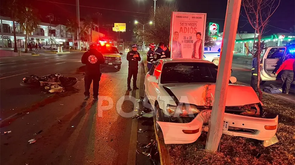 MONTERREY, Nuevo León.-Un choque entre un auto y una motocicleta dejo a tres personas lesionadas, en el municipio de Monterrey la madrugada del lunes.