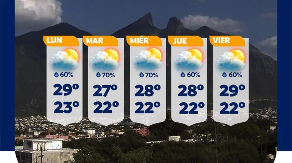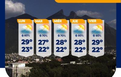 Hace unos momentos comenzó a registrarse el pertinaz lluvia en algunas áreas de la ciudad, y desde muy temprano las autoridades de Protección Civil de Nuevo León compartieron el pronostico del tiempo, se prevén que por la tarde se registren 29 grados, con un cielo parcialmente nublado.