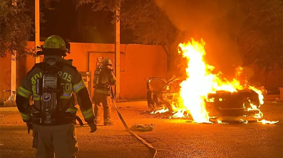 Ante esta situación, decidió orillarse y por un aparente cortocircuito en segundos el área del motor comenzó a incendiarse, consumiendo por completo el automóvil.