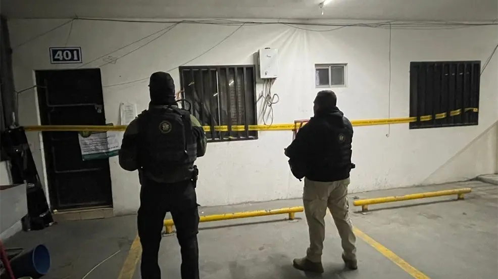 Con una orden en mano, agentes de la Fiscalía General de Justicia de Nuevo León, catearon un edificio ubicado en la calle Vicente Guerrero en su cruce con Manuel María del Llano.