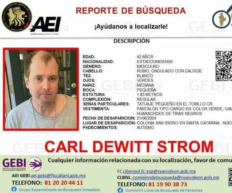 El hombre fue identificado como Carl Dewitt Strom, de 42 años de edad, con domicilio en la Colonia San Isidro, en el municipio de Santa Catarina.